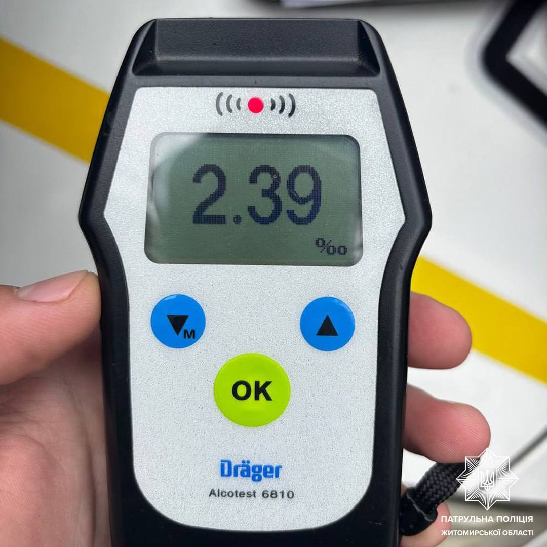 Під час спілкування з кермувальником Renault патрульні виявили у нього ознаки алкогольного сп'яніння. Водій погодився пройти освідування на місці зупинки, результат позитивний — 2,39 проміле.