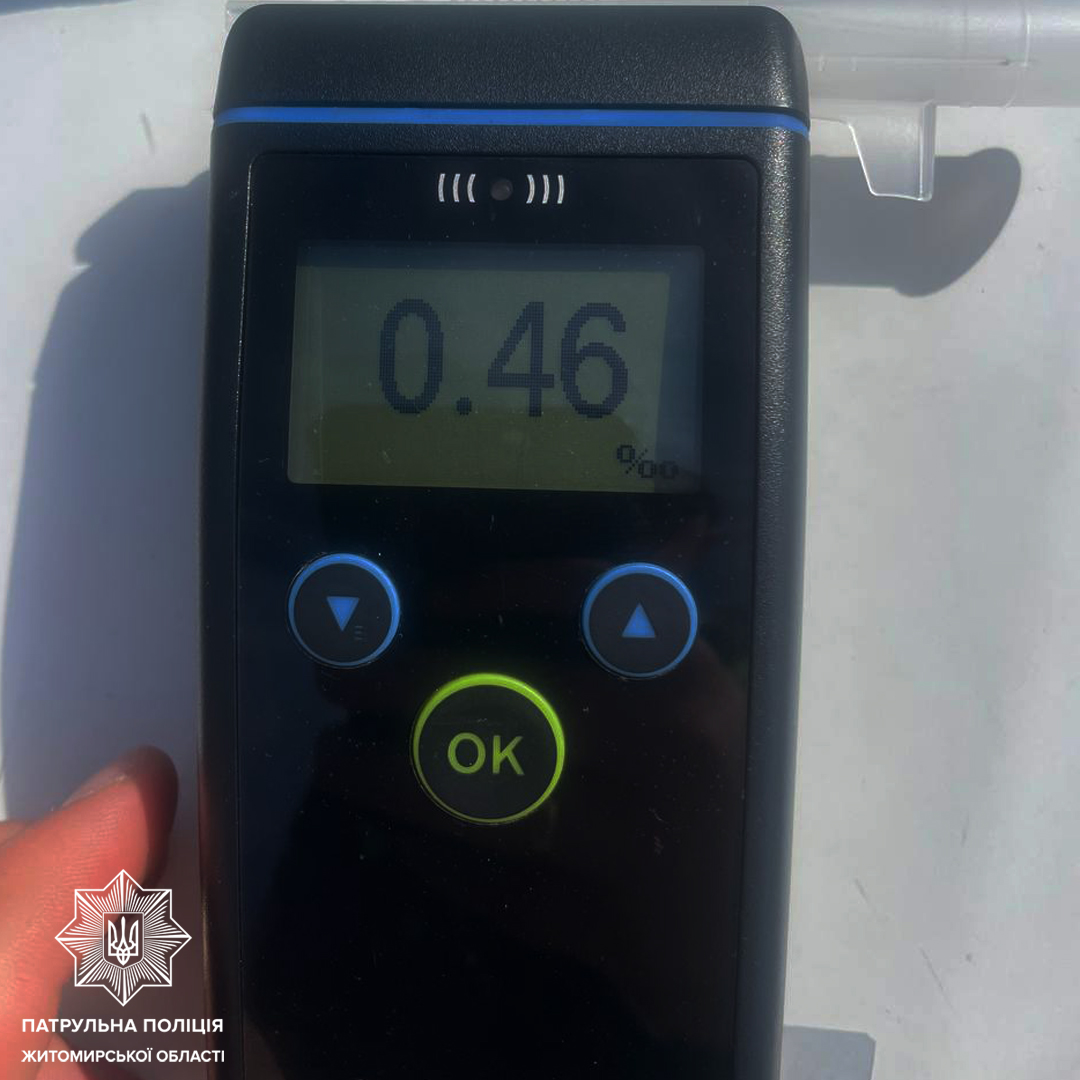 Під час спілкування із 40-річним водієм інспектори виявили у нього ознаки алкогольного сп‘яніння. У встановленому законом порядку чоловік пройшов освідування на місці зупинки. Результат позитивний — 0,46 проміле.