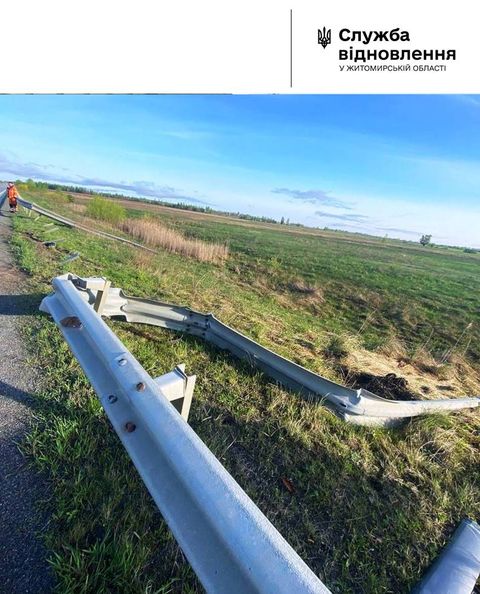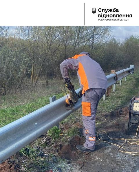 Служба відновлення та розвитку інфраструктури у Житомирській області інформує,що наразі робітники ремонтують пошкодження або ж проводять заміну секцій дорожнього бар’єрного огородження після сутичок з автотранспортом.