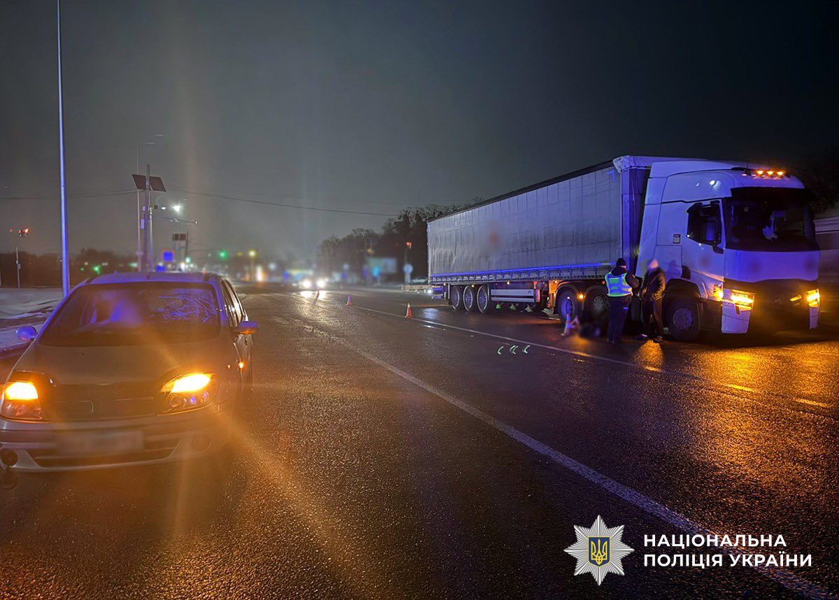 "За попередньою інформацією, 44-річний житель Вінниччини, перебуваючи за кермом автомобіля Renault, під час руху у напрямку міста Бердичева здійснив наїзд на жінку, яка знаходилася на автошляху. Після цього вона потрапила під колеса автопоїзда під керуванням 36-річного жителя Кіровоградщини. На жаль, унаслідок ДТП пішохідка отримала травми, несумісні з життям", — повідомляє поліція.