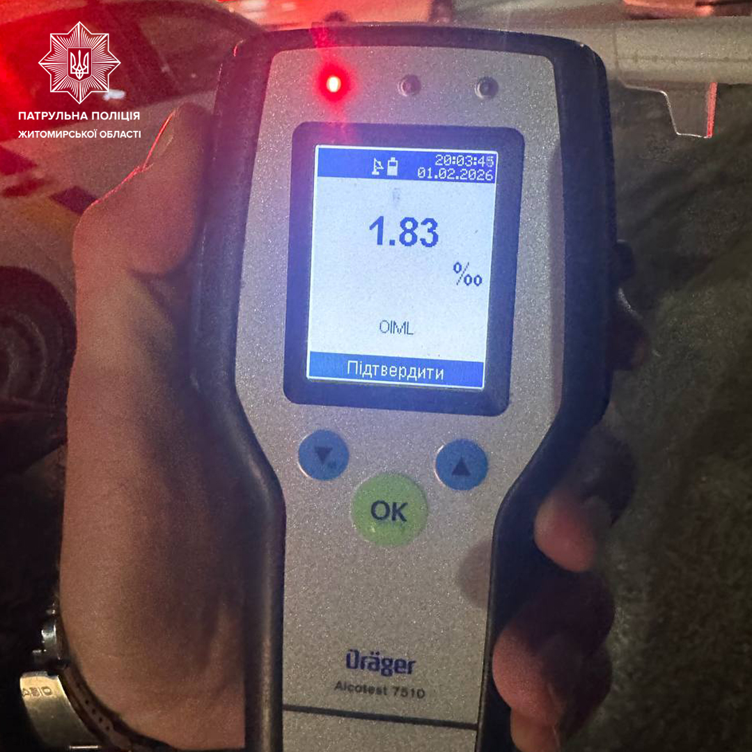 Під час спілкування з кермувальником Volkswagen патрульні виявили ознаки алкогольного сп'яніння. Водій погодився пройти освідування на місці. Результат позитивний — 1,83 проміле.