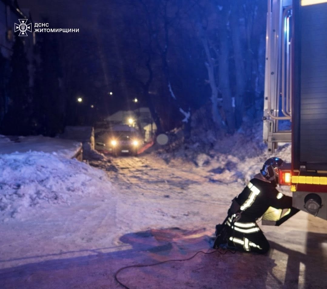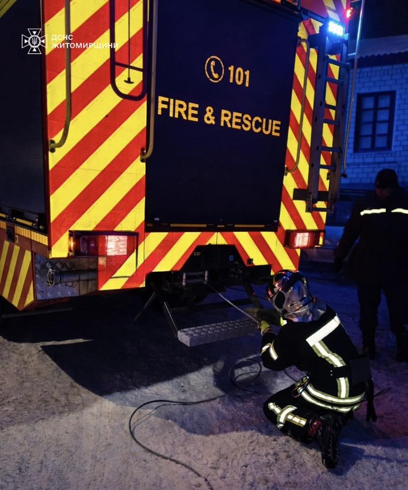 Вчора у Житомирі фахівці ДСНС надали допомогу працівникам екстреної медичної допомоги, які прямували з виклику до лікувального закладу та через ожеледицю не могли виїхати на крутий підйом.