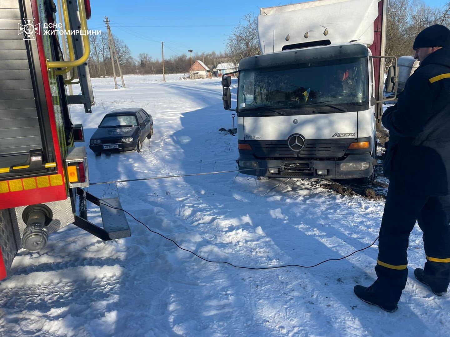 У Житомирському районі рятувальники визволили з снігового полону вантажівку