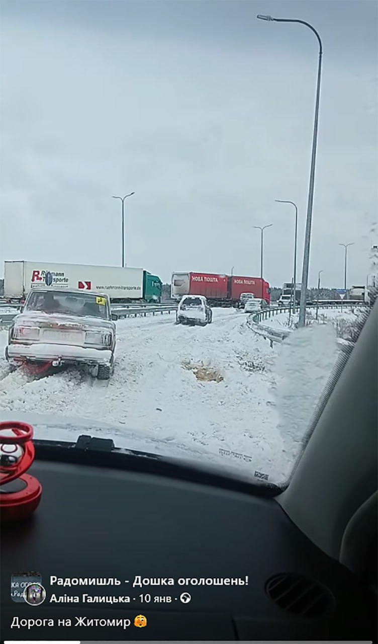 Жахлива дорога на Житомир: сніг, затори та повільний рух автівок. ВІДЕО
