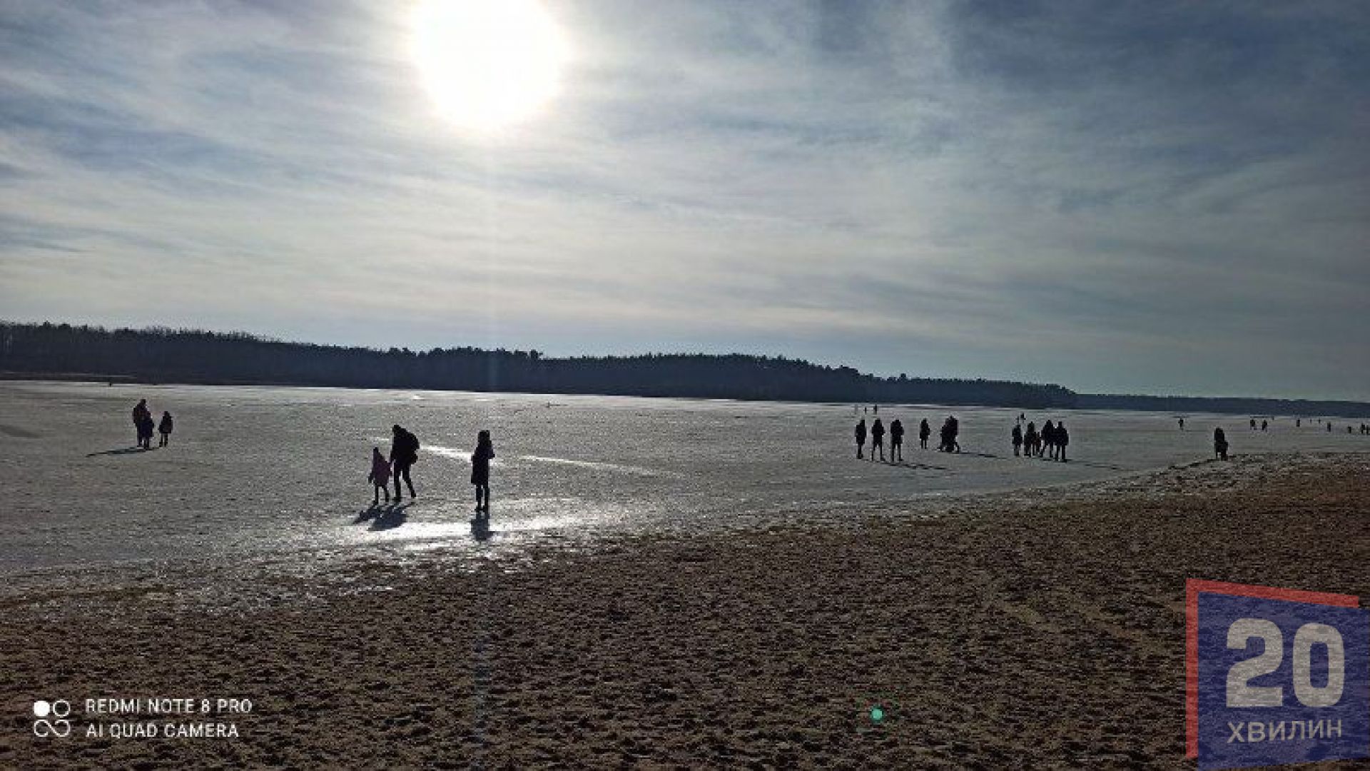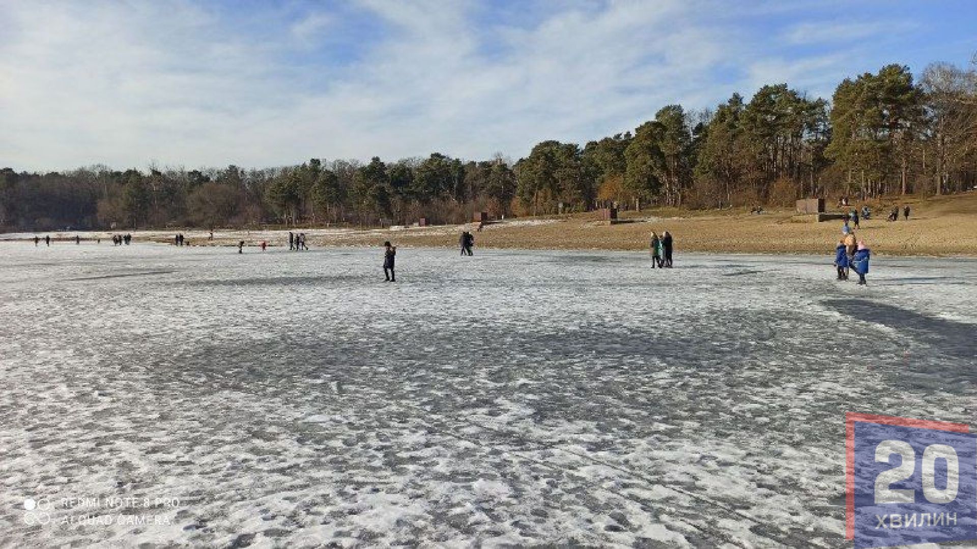 Товщина криги на річці Тетерів становить від 5 до 7 сантиметрів. Тому більшість відпочиваючих гуляють саме на льоду. Там також дуже багато рибалок. Але покльовка, за словами одного з рибалок, не дуже. Також працюють кілька кіосків, дитячий майданчик.