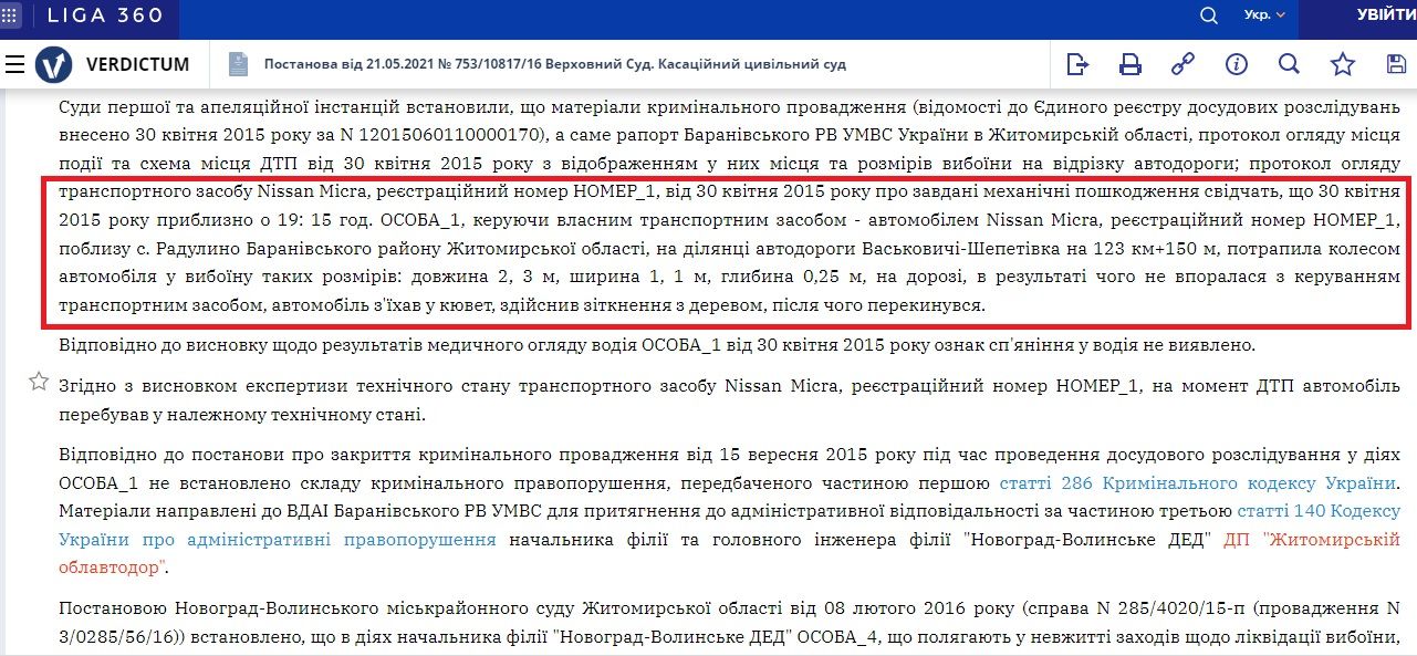 Під час розгляду справи судді прийшли до висновку, що за чинним законодавством завдану шкоду має відшкодовувати замовник, який і мав би проконтролювати як виконується його завдання. У підсумку САД визнали винною і зобов’язали сплатити 300 тис грн матеріальної та ще 350 тис грн моральної шкоди.