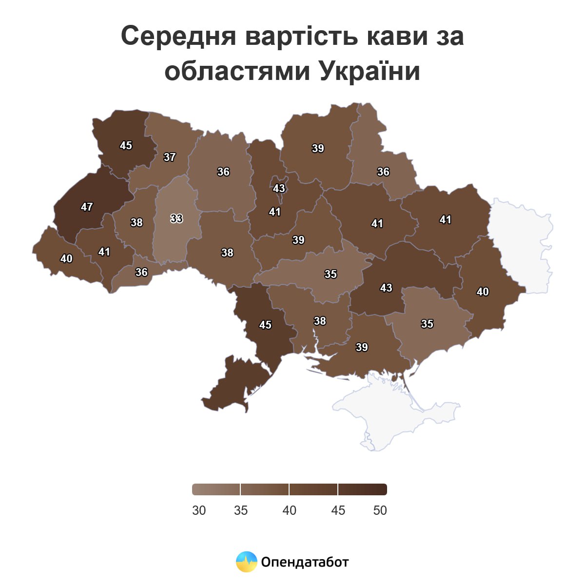 Львівщина — 47 грн за чашку (+19% за рік). Уперше за кілька років регіон став лідером за ціною.