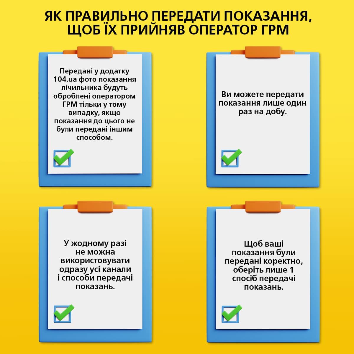 Відповідно до Кодексу газорозподільних систем, споживачам газу необхідно зафіксувати показання газового лічильника станом на 1-ше число і передати газорозподільній компанії дані в період із 1-го по 5-те число місяця, наступного за розрахунковим.