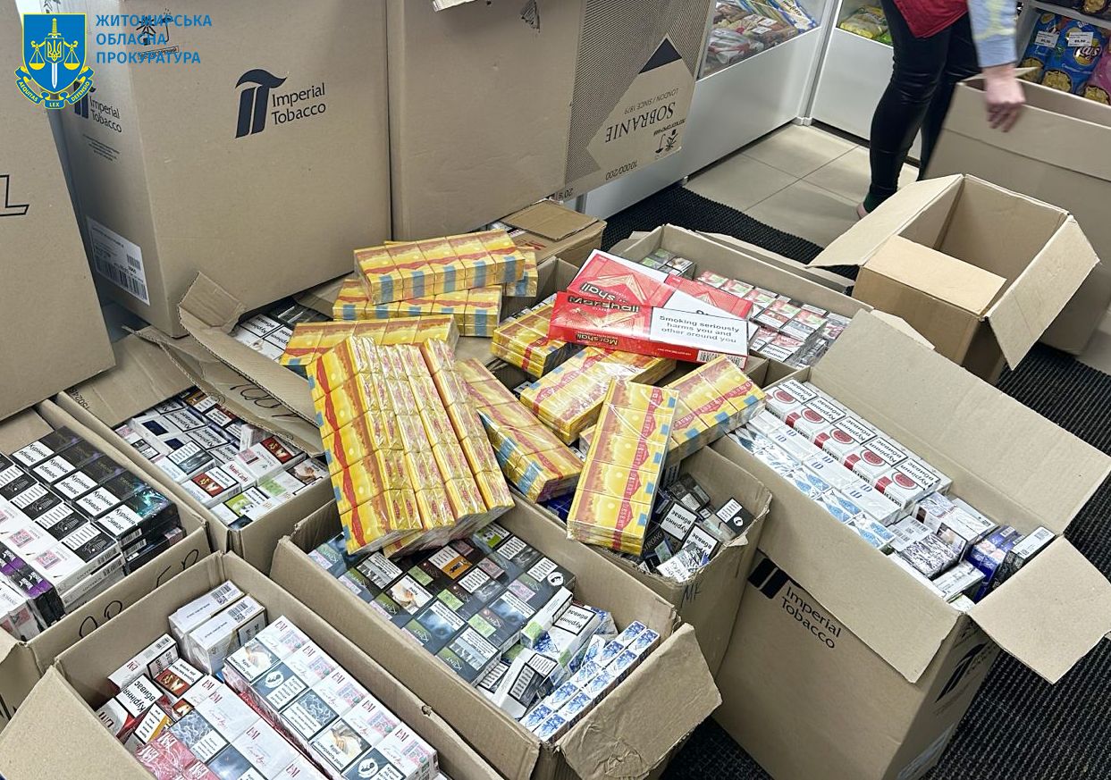 За процесуального керівництва Житомирської обласної прокуратури організованій злочинній групі у складі чотирьох осіб повідомлено про підозру у незаконному придбанні з метою збуту, зберіганні з цією метою та збуті незаконно виготовлених тютюнових виробів (ч. 3 ст. 28, ч. 1 ст. 204 КК України).