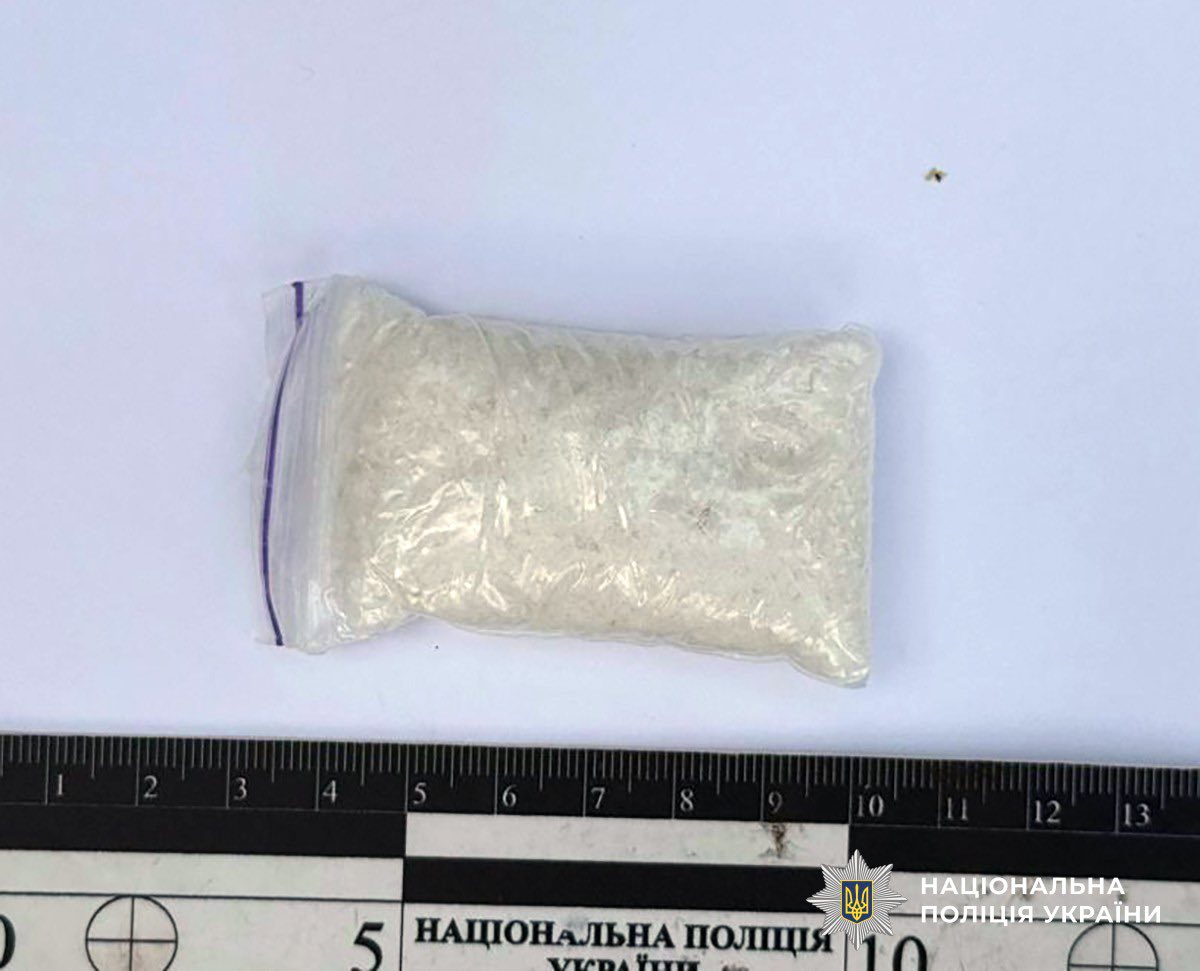 Під час слідчих дій в оселі чоловіка поліцейські виявили та вилучили ще кілька пакунків з порошкоподібною та кристалічною речовинами, ваги та банківську картку з характерним нашаруванням.