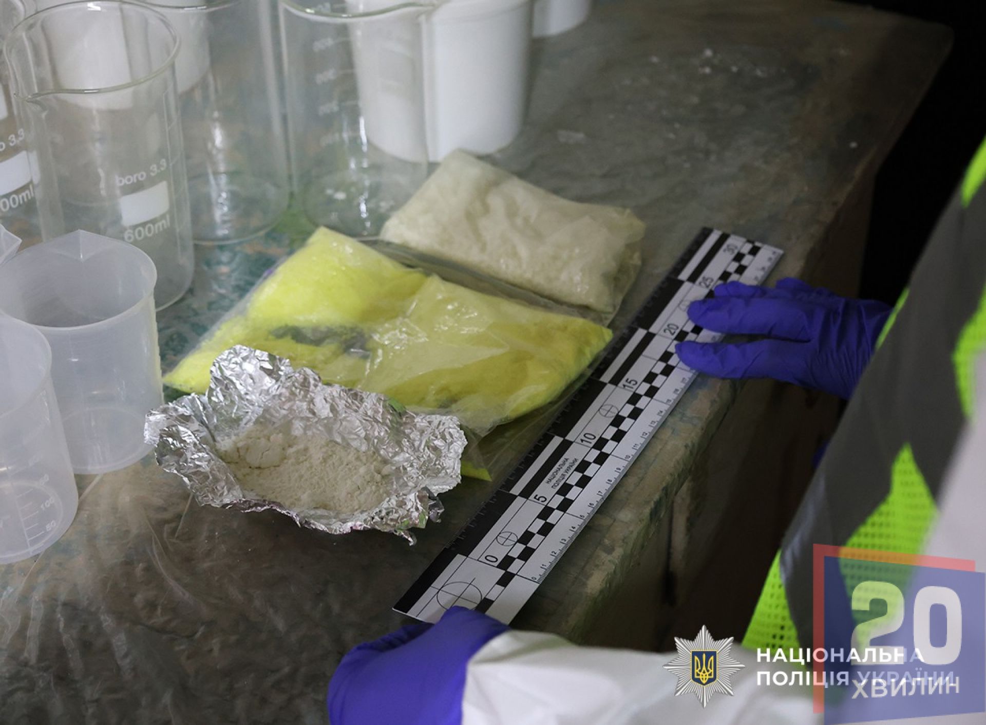 Крім того, вилучено інші докази протиправної діяльності: лабораторне обладнання, спеціальний посуд, пакувальні матеріали, електронні ваги та чорнові записи. Також грошові кошти, транспортні засоби, мобільні телефони, комп’ютерну техніку та банківські картки.
