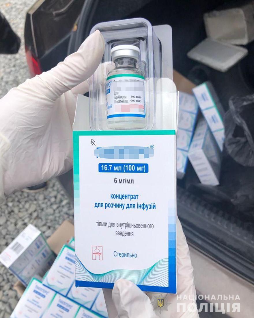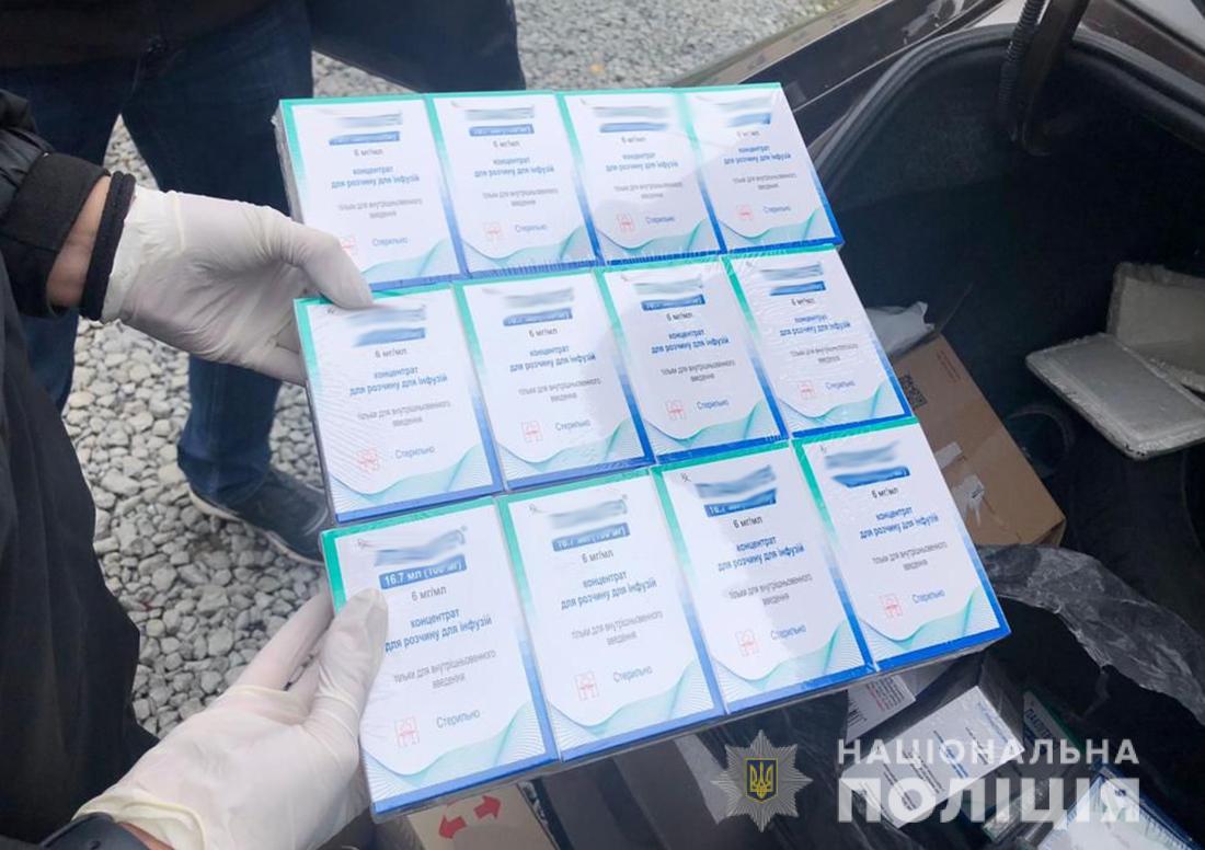 «Цього ж дня з автомобіля одного з учасників злочинної схеми було вилучено готівку у майже пів мільйона гривень та чергову партію ліків (50 упаковок вартісного протипухлинного препарату)», – повідомляє відділ комунікації поліції Житомирської області.