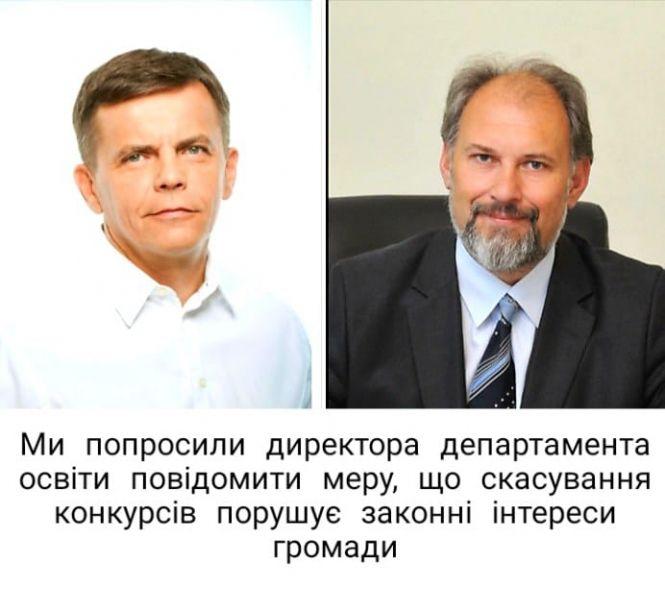 «Міський голова, можливо, не знає, що директори шкіл пенсійного віку, з якими 1 липня 2020-го було укладено контракти на 1 рік, можуть знову отримати посаду тільки через конкурс? Міський голова, можливо, не знає, але в департаменті освіти точно повинні знати: там працюють фахівці у сфері освіти…».