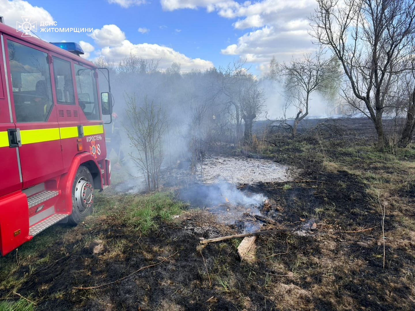 Зокрема, у с. Теренці Житомирського району через пориви вітру існувала загроза стрімкого поширення вогню від сухостою до житлових будинків. Однак рятувальникам вдалося цьому запобігти та загасити пожежу.