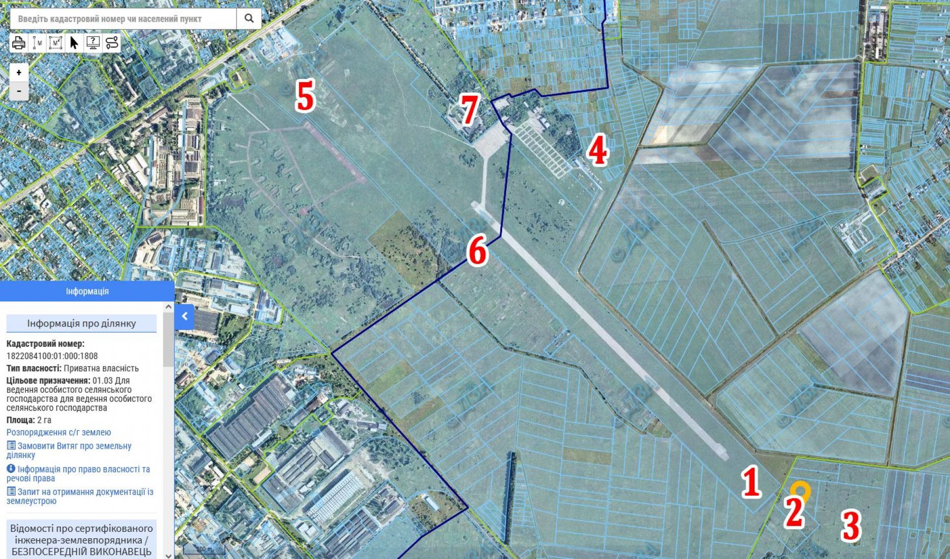 Якщо подивитися на карту Держгеокадастру, то можна побачити, що приватна територія клубу «Авіатік» не тільки перебуває поряд із територією аеродрому, а й перетинає її у кількох місцях.