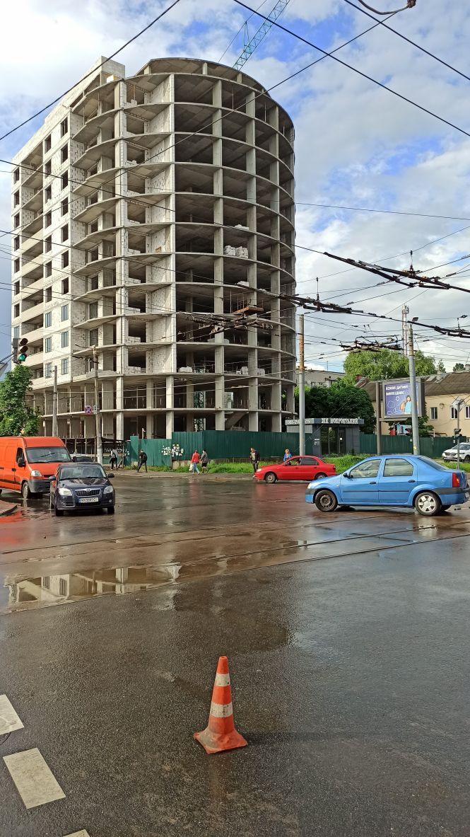 Допоки міськрада роками, точніше, десятиліттями, зволікає з вирішенням «мокрого» питання, на ділянці поряд з пресловутим перехрестям виростає гігантська «свічка». Багатоповерховий житловий «елітний» будинок, як позиціонує його забудовник, ледве не вперся у проїжджу частину та довколишні споруди. Максимально забудована земельна ділянка означає практично відсутність прибудинкової території, повноцінного дитячого майданчика і тим паче місць для паркування автомобілів.