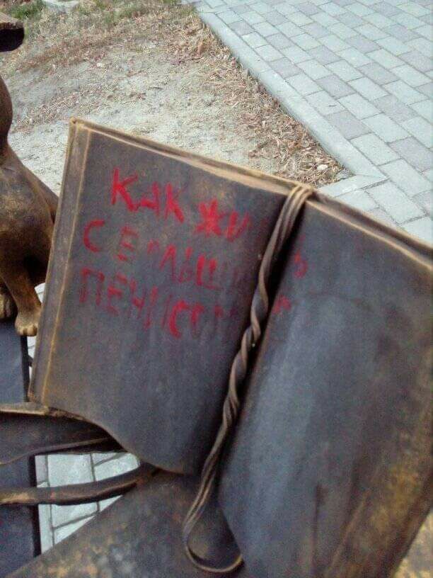 Нагадаємо, про встановлення скульптури нещодавно повідомив на своїй сторінці у фейсбуці депутат обласної ради Валерий Оноприенко. Особливо було підкреслено, що в цьому місці ведеться постійне відеоспостереження, тож скульптура убезпечена від вандалів. Як бачимо, це не зупинило хуліганів.