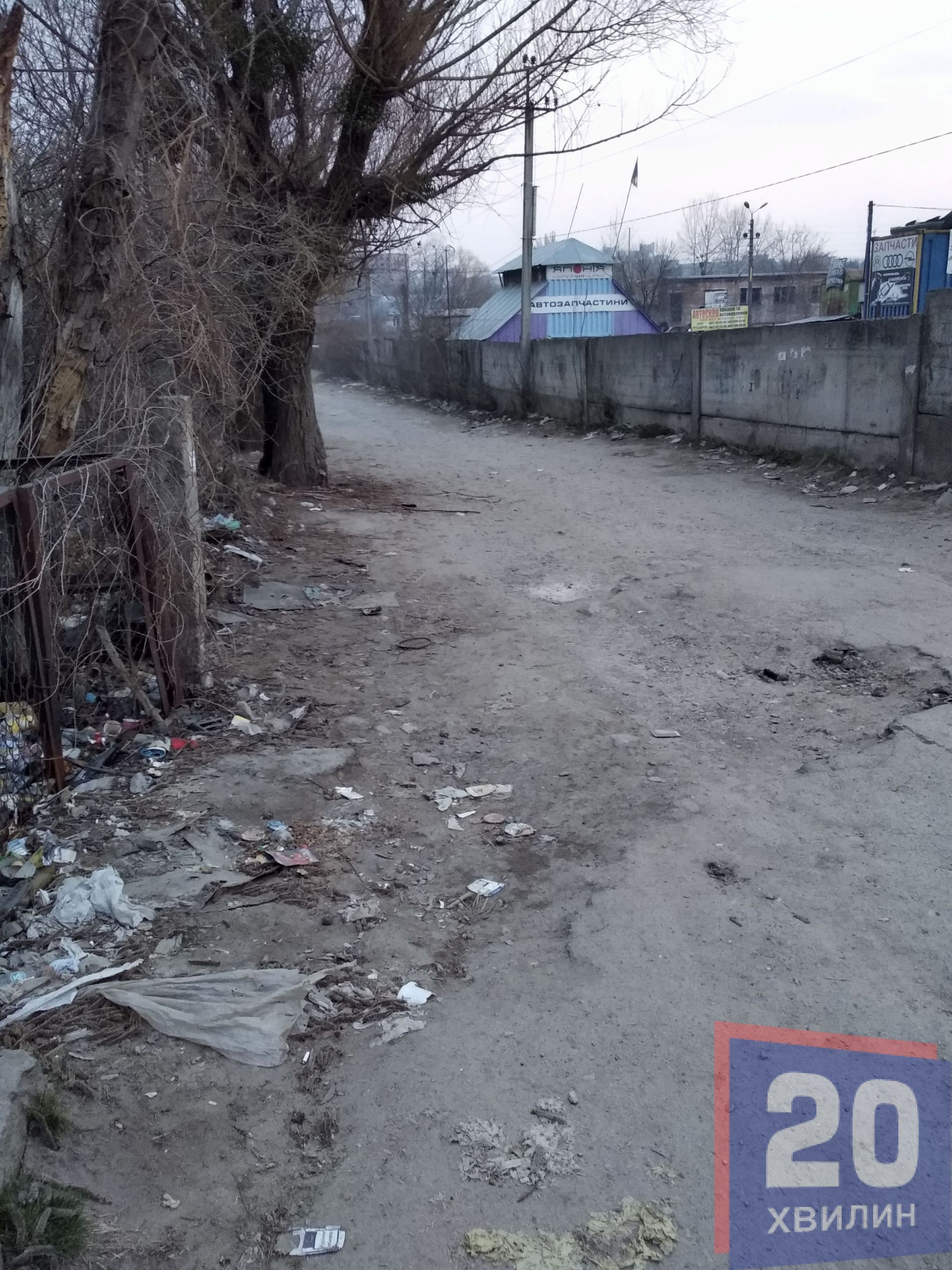 Якщо її початок ще у досить непоганому стані завдяки тому, що тут знаходяться 2 школи і військкоммат, то далі все печально і нагадує кадри з якось страшного фільму про апокаліпсис: закинуті будівлі, місцями без вікон, зарослі дерев і кущів, поодинокі перехожі, що швиденько біжать у своєму напрямку, а головне – купи сміття обабіч дороги. Його настільки багато, що місцями не видно навіть землі. Пориви вітру розносять сміття на іншу сторону, де знаходяться гуртожитки і ліцей. Не може похвалитися чистотою і місцевий автобазар – за кіосками де-не-де теж папірці, порожні пляшки і інші нечистоти.