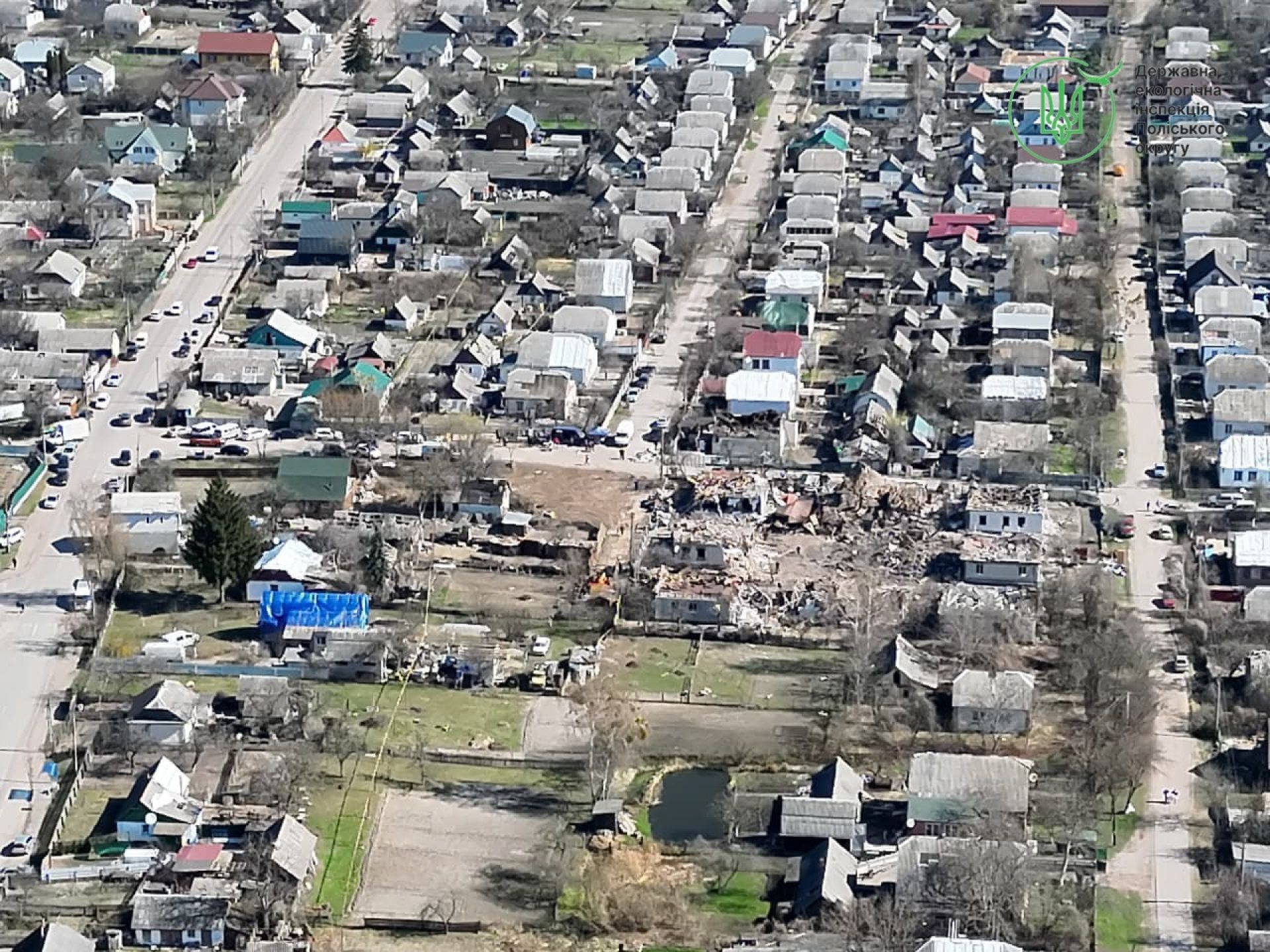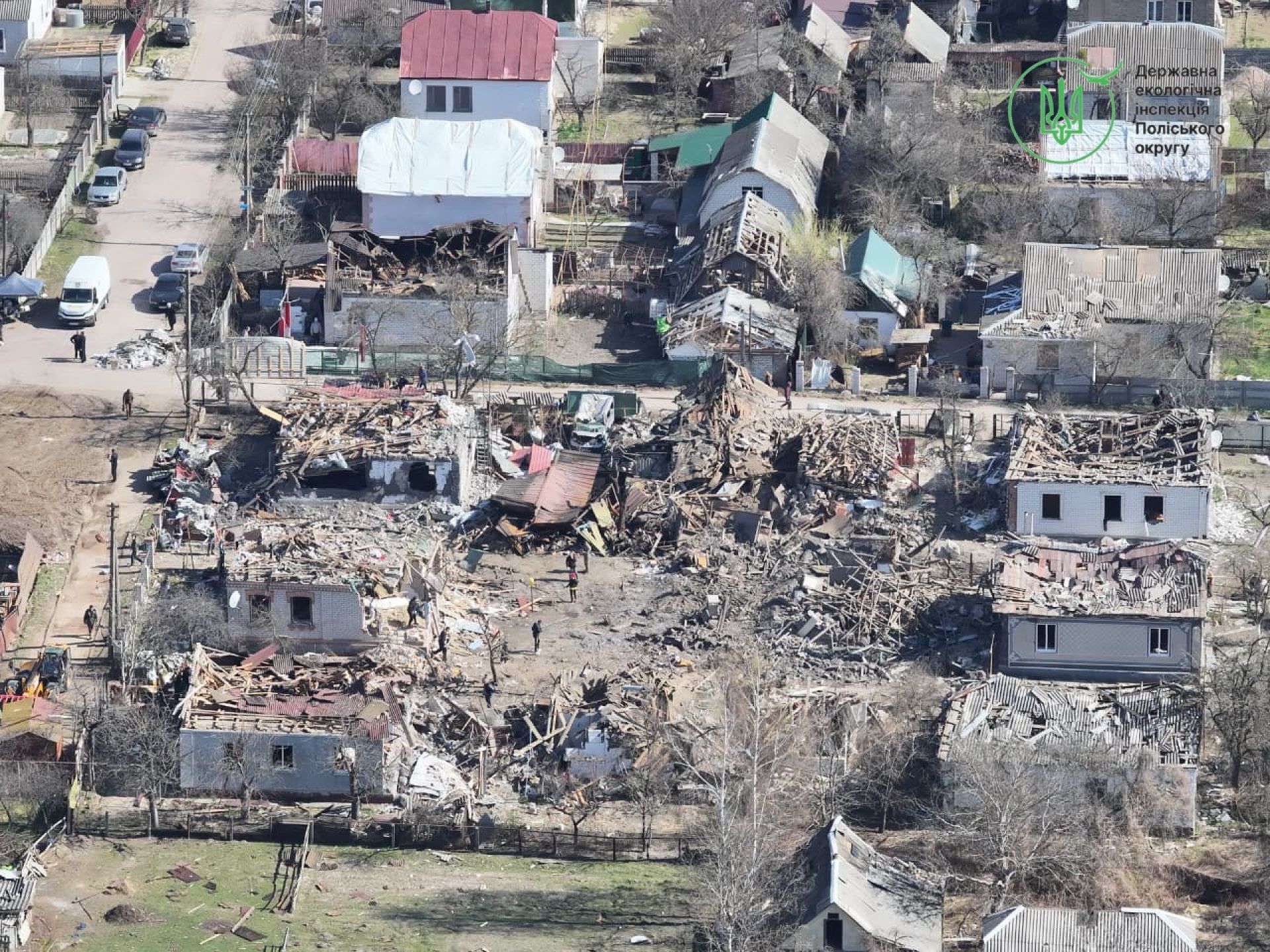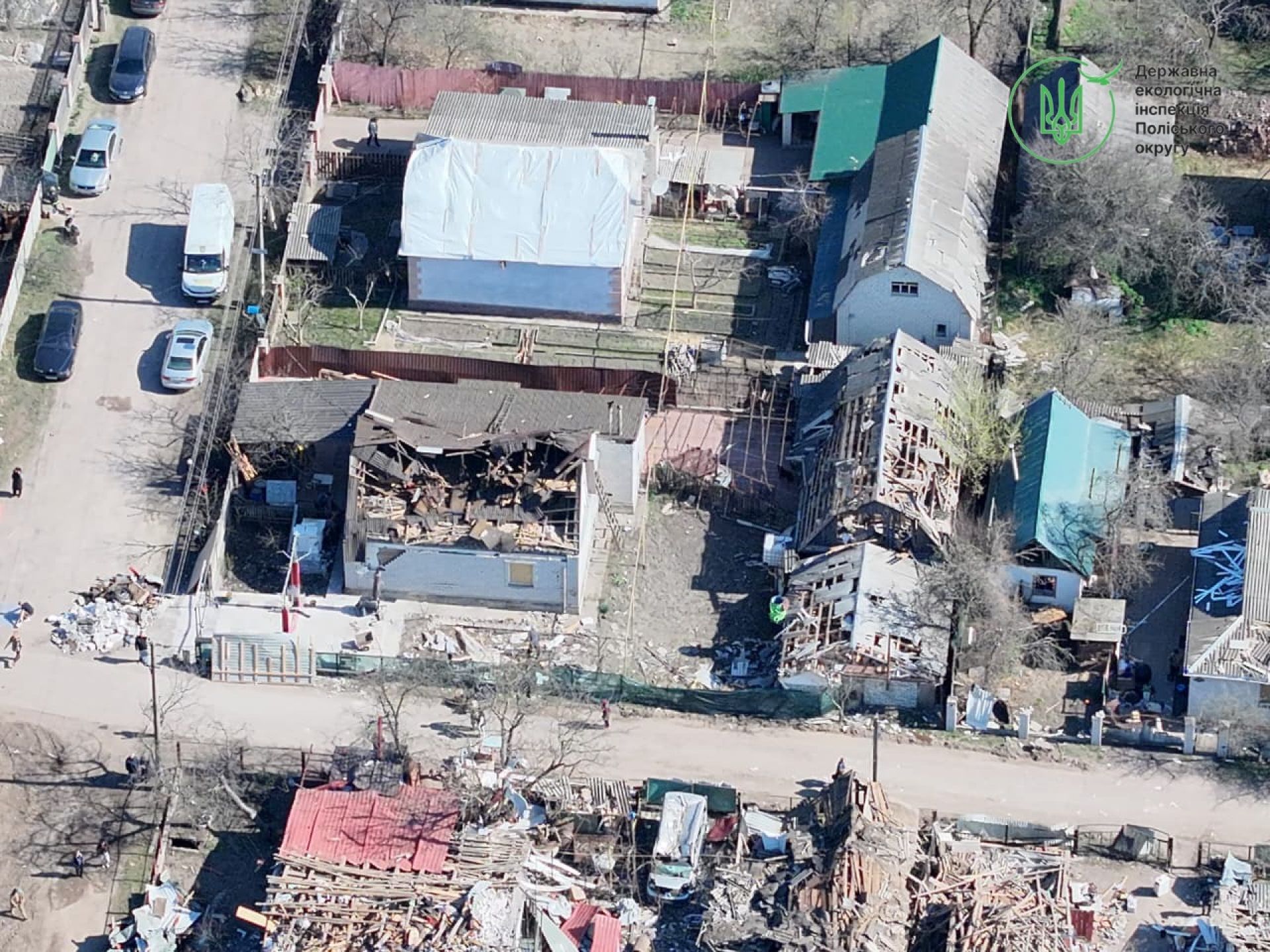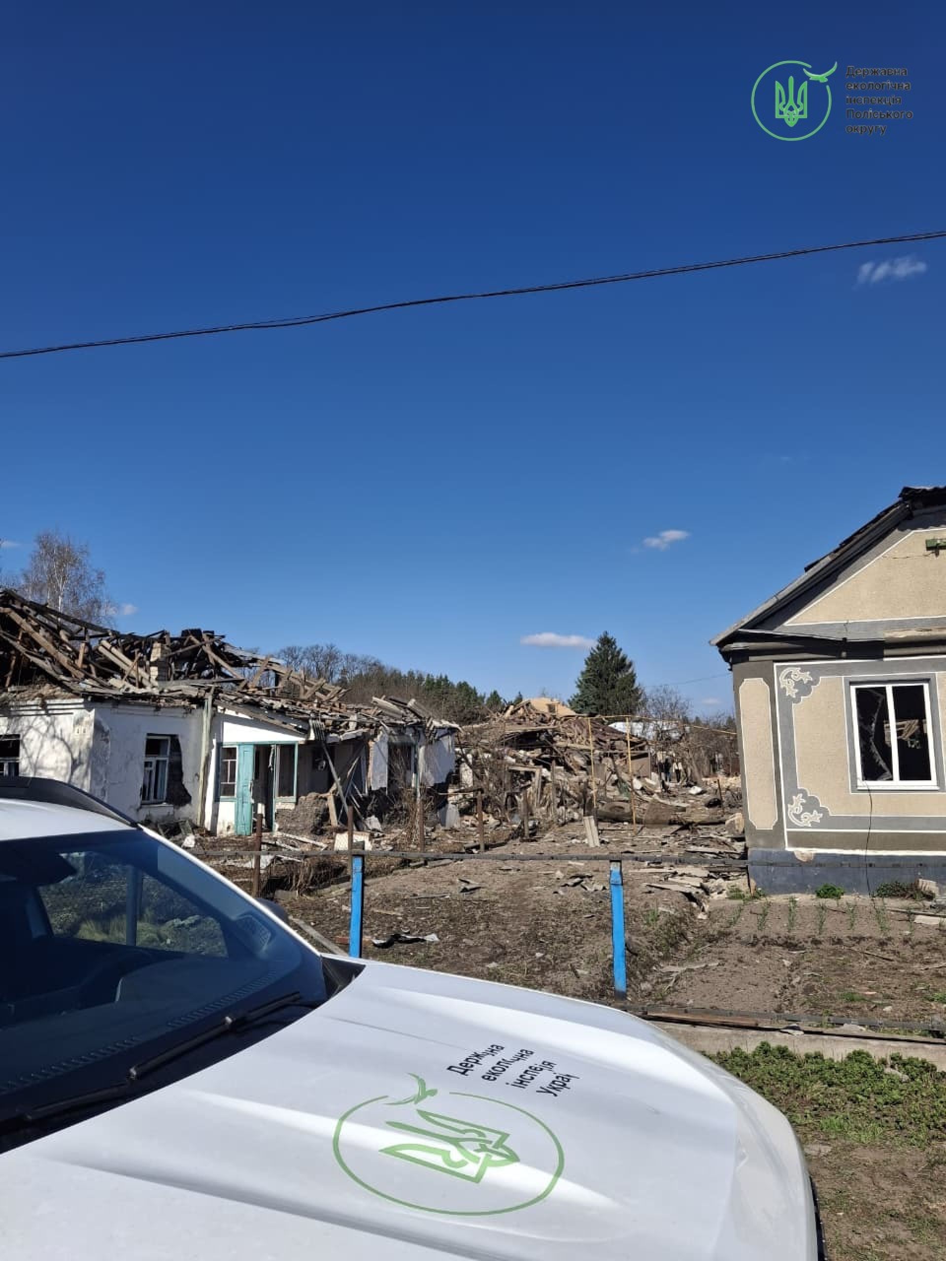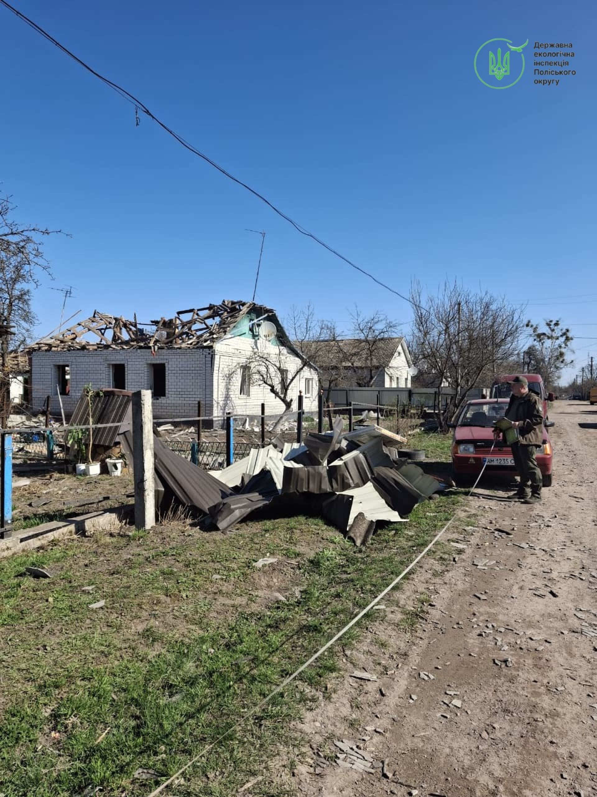 4 березня фахівці Державної екологічної інспекції Поліського округу виїхали на місця влучань у місті Коростень для фіксації наслідків обстрілу.