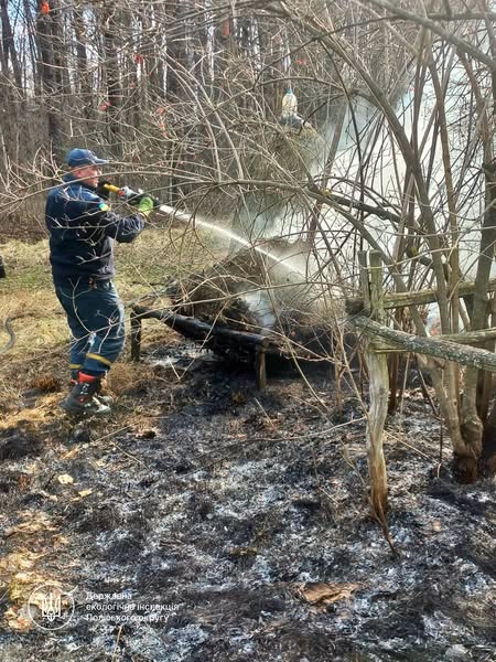 Того ж дня, під час рейдових заходів на території Бердичівського району екоінспекторами було виявлено факт горіння залишків сухої рослинності на земельній ділянці поблизу лісосмуги. Щоб запобігти поширенню вогню на лісосмугу, на місце події викликано ДСНС, спільно з якими пожежу було оперативно локалізовано та ліквідовано. Порушника, який спричинив підпал сухої рослинності, що призвів до масштабнішої пожежі, на місці події не було.