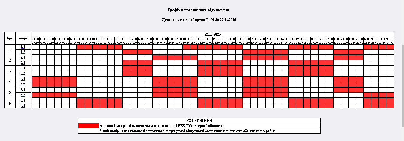 з 00:00 до 24:00 – графіки погодинних відключень (ГПВ)