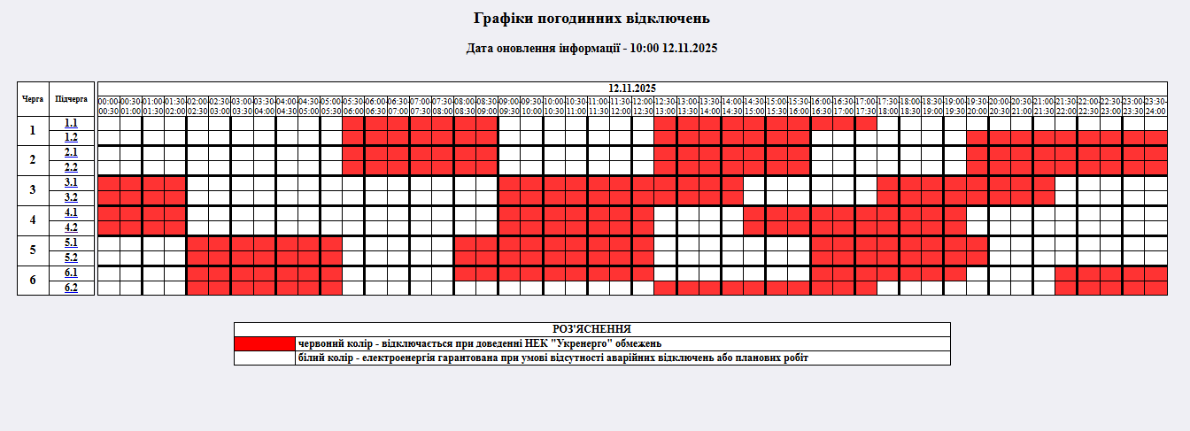 з 00:00 до 24:00 – графіки погодинних відключень (ГПВ)
