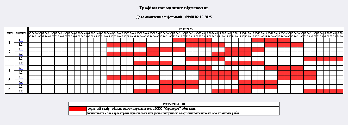 з 06:00 до 24:00 – графіки погодинних відключень (ГПВ)