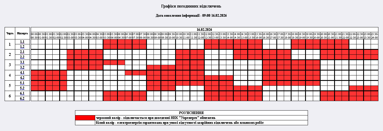 Графіки відключення електрики на понеділок, 16 лютого