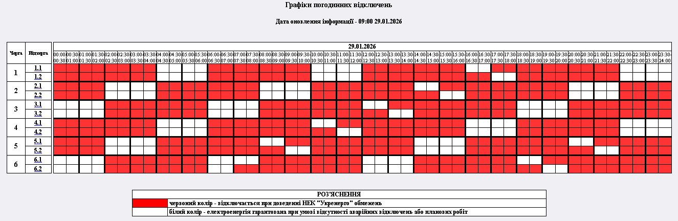 Графіки відключення електрики у четвер, 29 січня