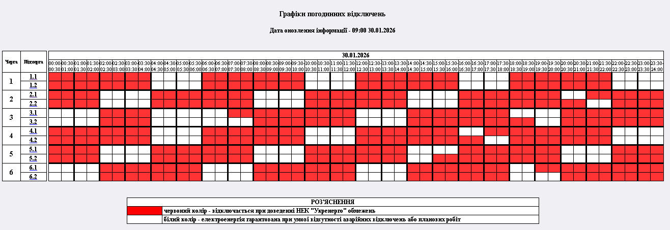 Графіки відключення електропостачання на 30 січня