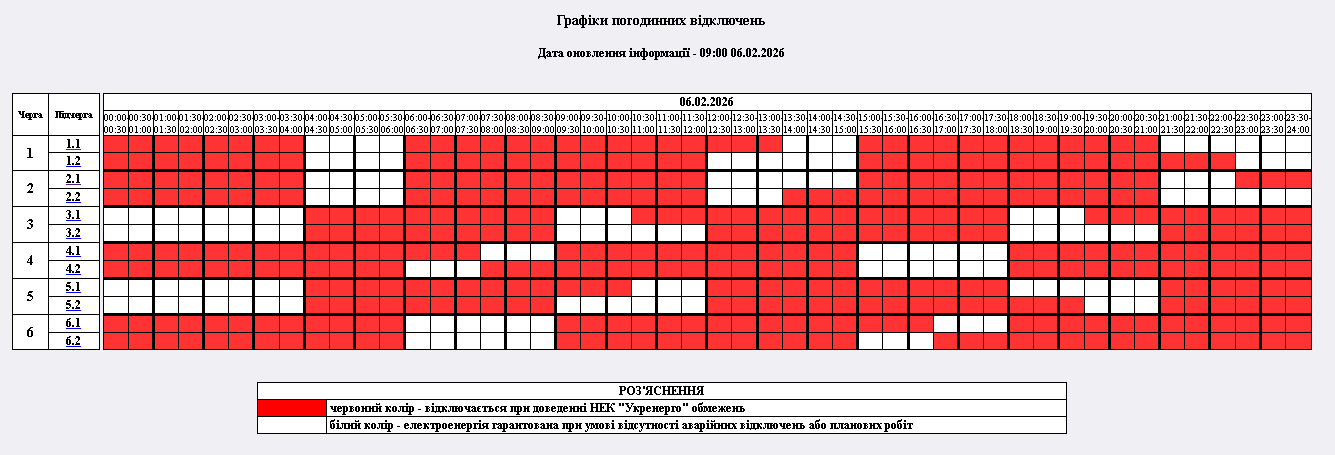 Графіки відключення світла на 6 лютого