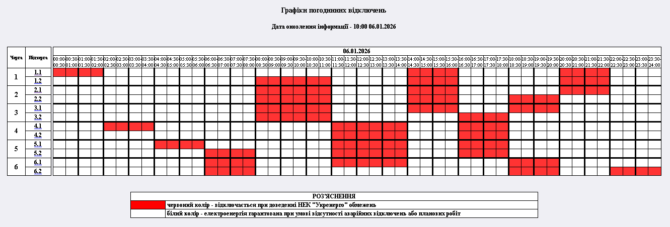 Графіки відключення світла на 6 січня