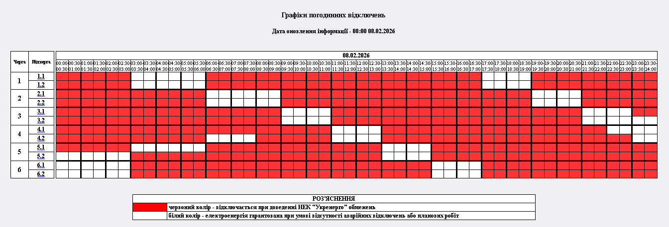 Графіки відключення світла на неділю, 8 лютого