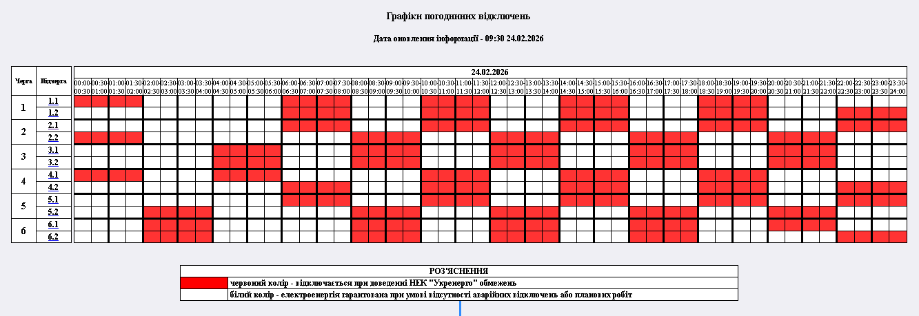 Графіки відключення світла на вівторок, 24 лютого