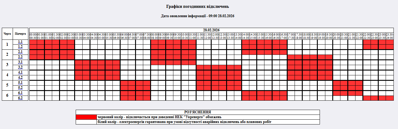 з 00:00 до 24:00 – графіки погодинних відключень (ГПВ)