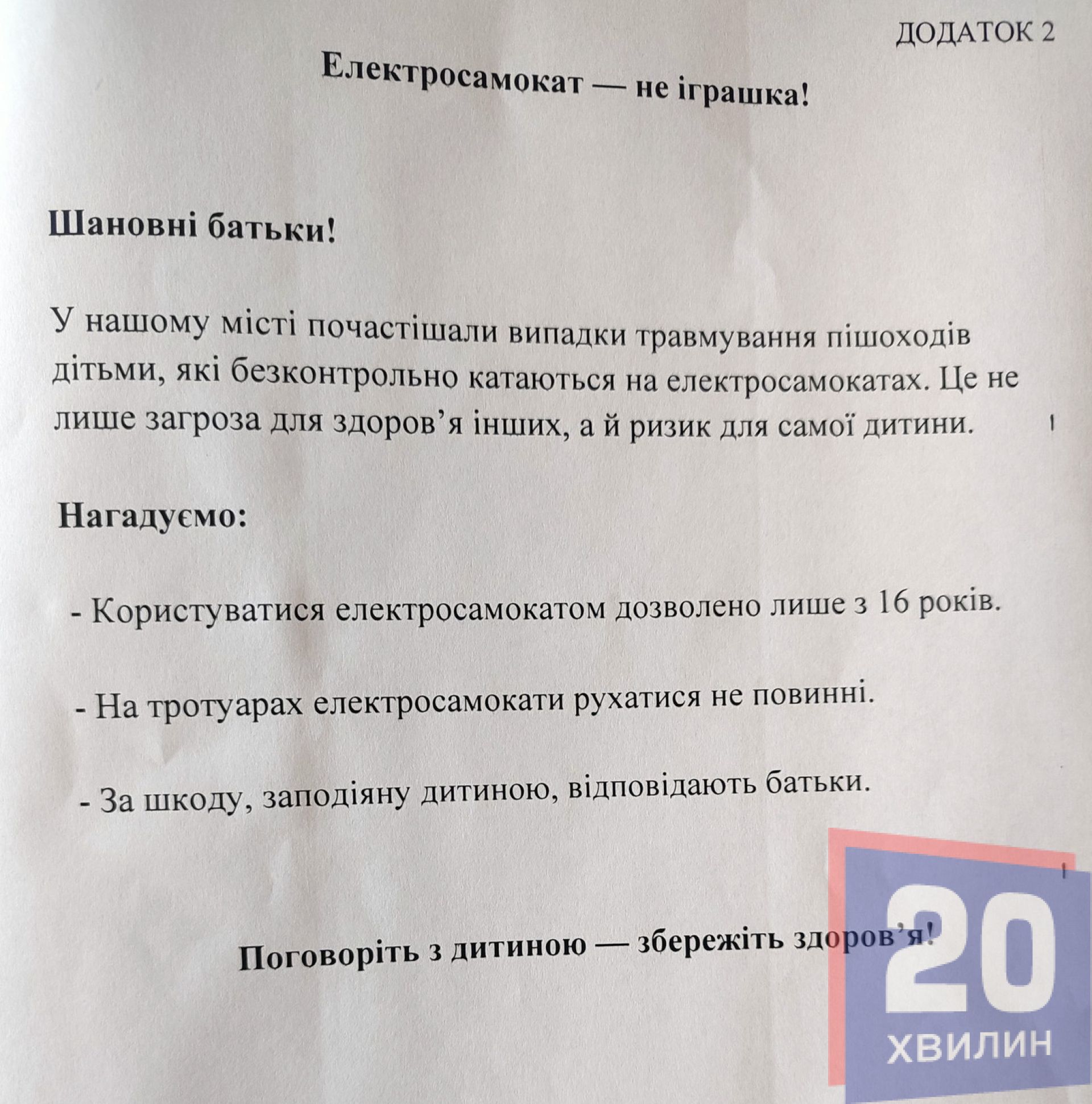 - встановити вікове обмеження на користування електросамокатами — не молодше 16 років;