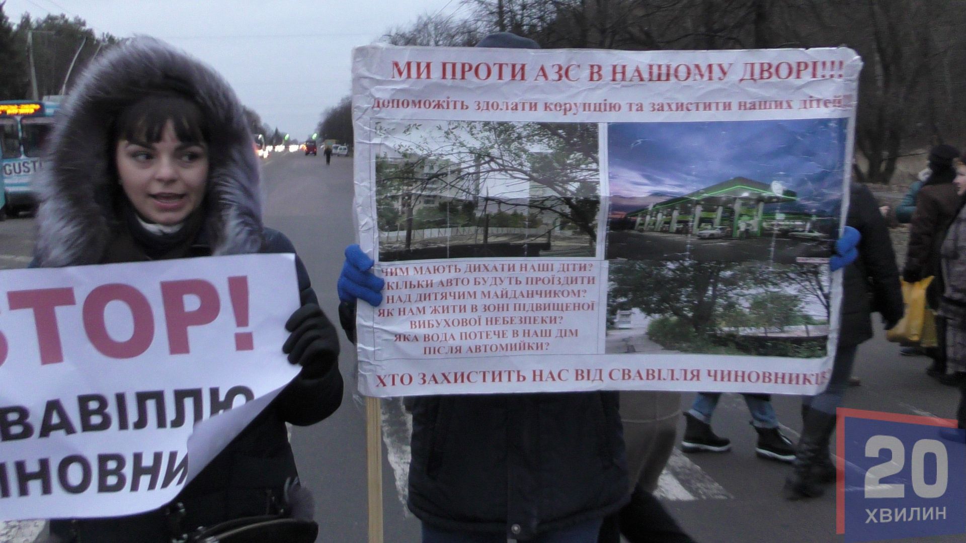 Поки лідери мітингувальників мали розмову з представниками влади, учасники акції вигукували гасла: «Ми проти АЗС», організатори зауважили, що акція спрямована проти будівництва лакофарбового заводу на території Оліївської ОТГ Житомирського району.