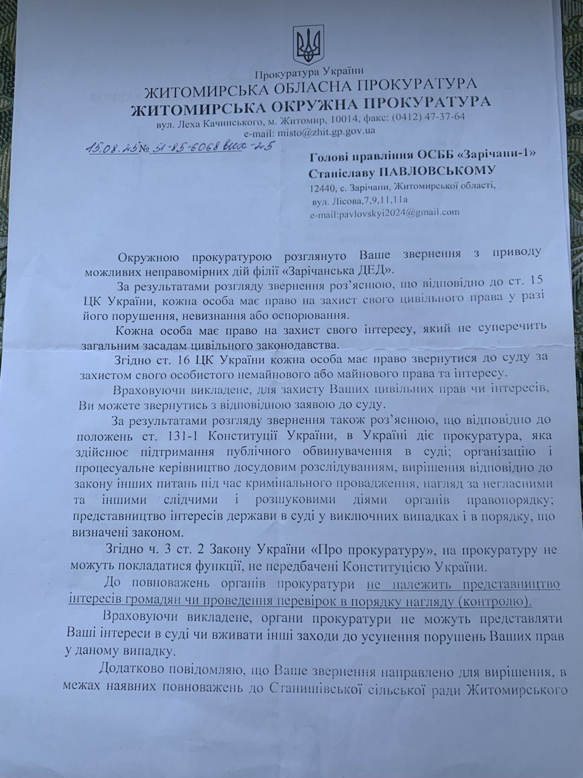 Зарічани — не «околиця цивілізації». Це населений пункт, що входить до Станишівської громади, і має такі самі права на гідні умови, як і будь-яке містечко чи районний центр. Мешканці готові співфінансувати ремонт, шукають шляхи приєднання до Житомира — але без участі влади навіть ініціатива стає марною.