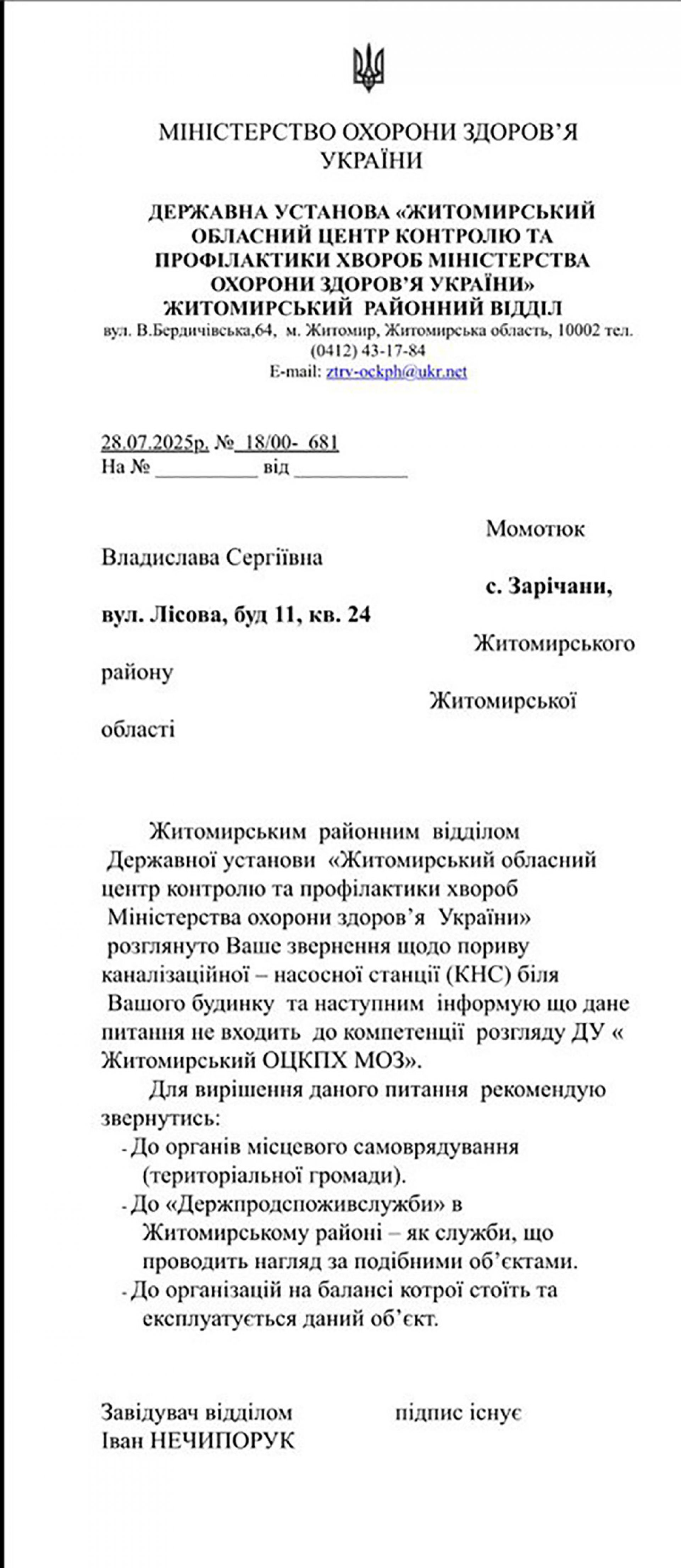 Це не відповіді — це відписки. У той час як каналізація перетворює водовідведення на стихійне лихо, офіційні структури спостерігають і мовчать.