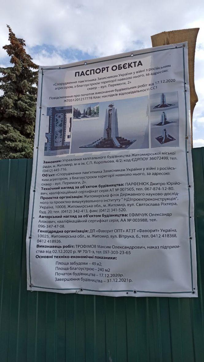 У Житомирі продовжується будівництво пам’ятника «Воїнам Житомирщини – захисникам Вітчизни у збройному конфлікті на сході України».