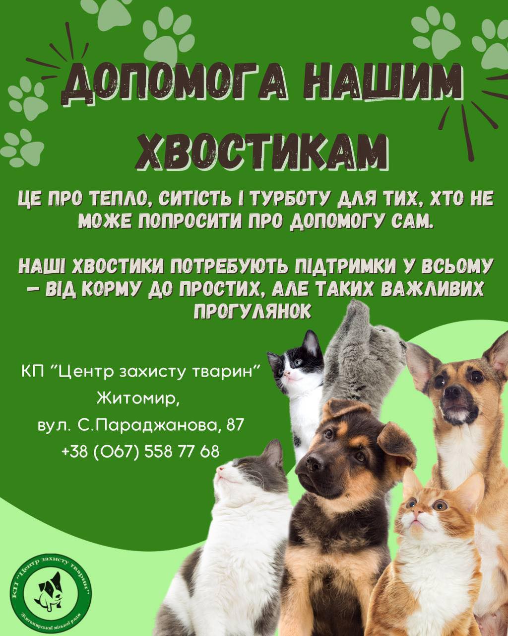КП "Центру захисту тварин" просить допомогу для хвостиків
