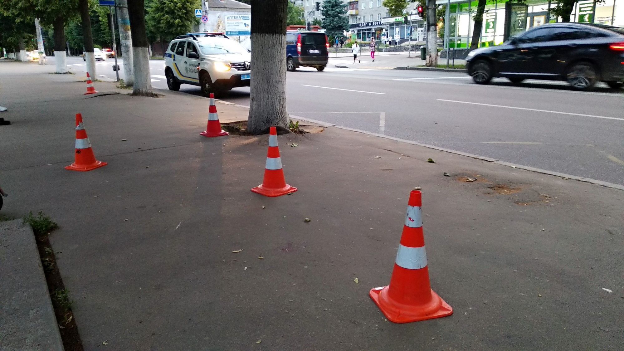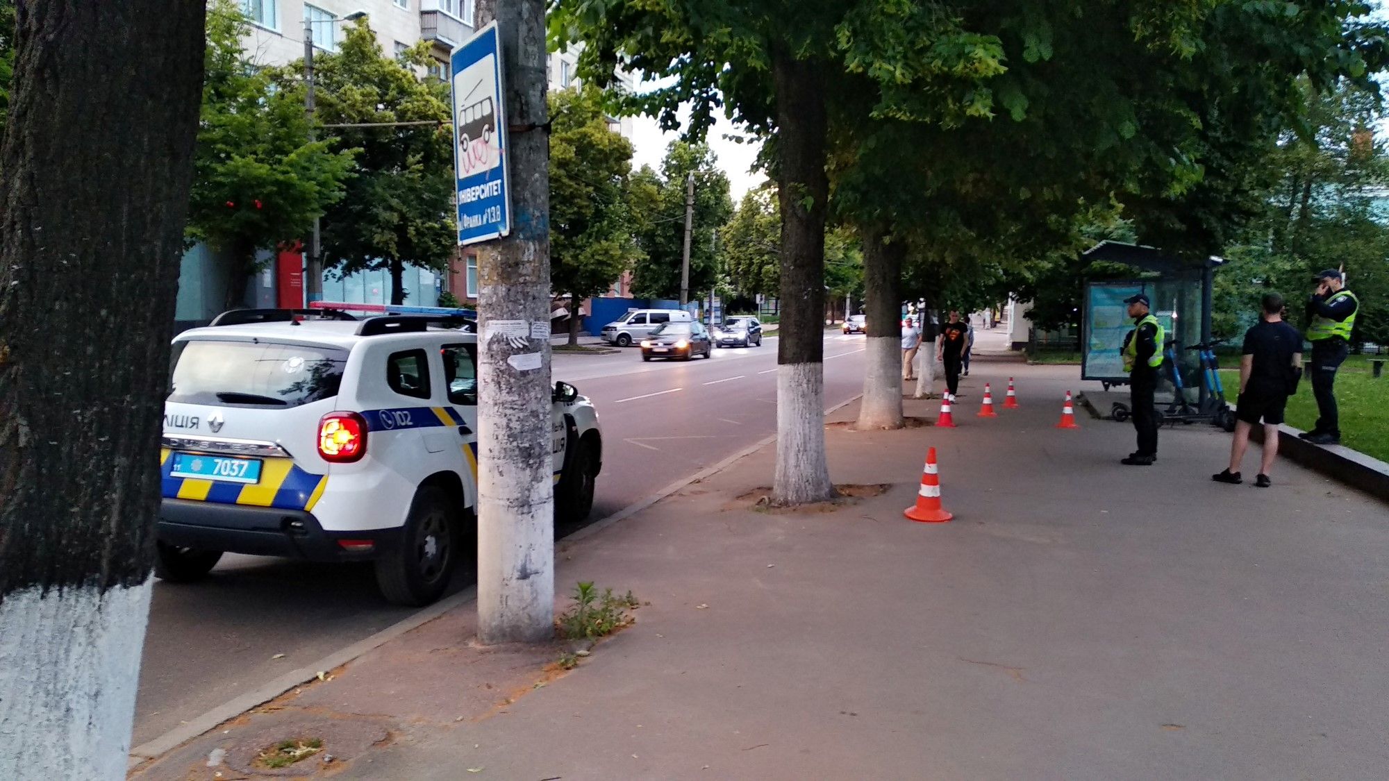 Вщент посварившись з юнаками, я пішов далі, але не встиг дійти до ЖДУ ім. Івана Франка, як побачив поліцію, яка, за їхніми словами, «охороняла місце події». Спілкуватися з журналістом поліцейські відмовилися, повідомивши, що «їм це заборонено», тому подробиці прийшлося дізнаватися від місцевих. За словами свідків, дівчинка їхала на самокаті на швидкості і на зупинці не встигла загальмувати на ямі на тротуарі, тому дуже сильно травмувалася. У зв’язку з тим, що травмування відбулося за участі транспортного засобу, яким є самокат, було викликано поліцію. А кров на асфальті дуже яскраво підтверджувала ці свідчення.
