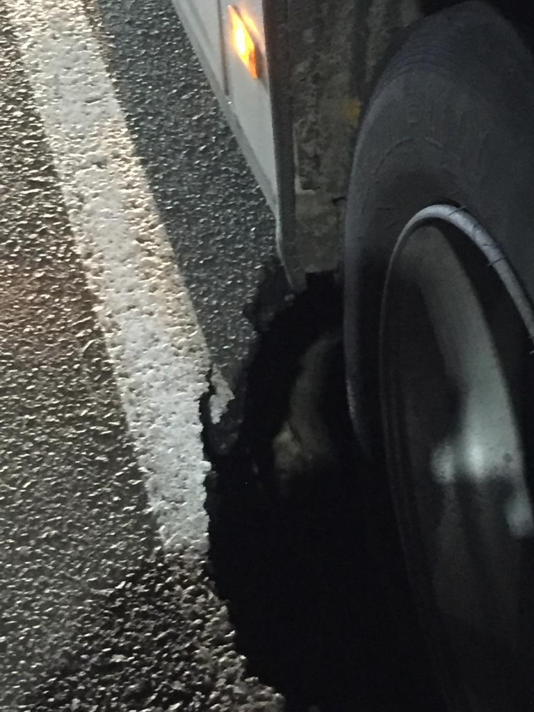 На Бердичівський автобус провалився колесом у яму. ФОТО