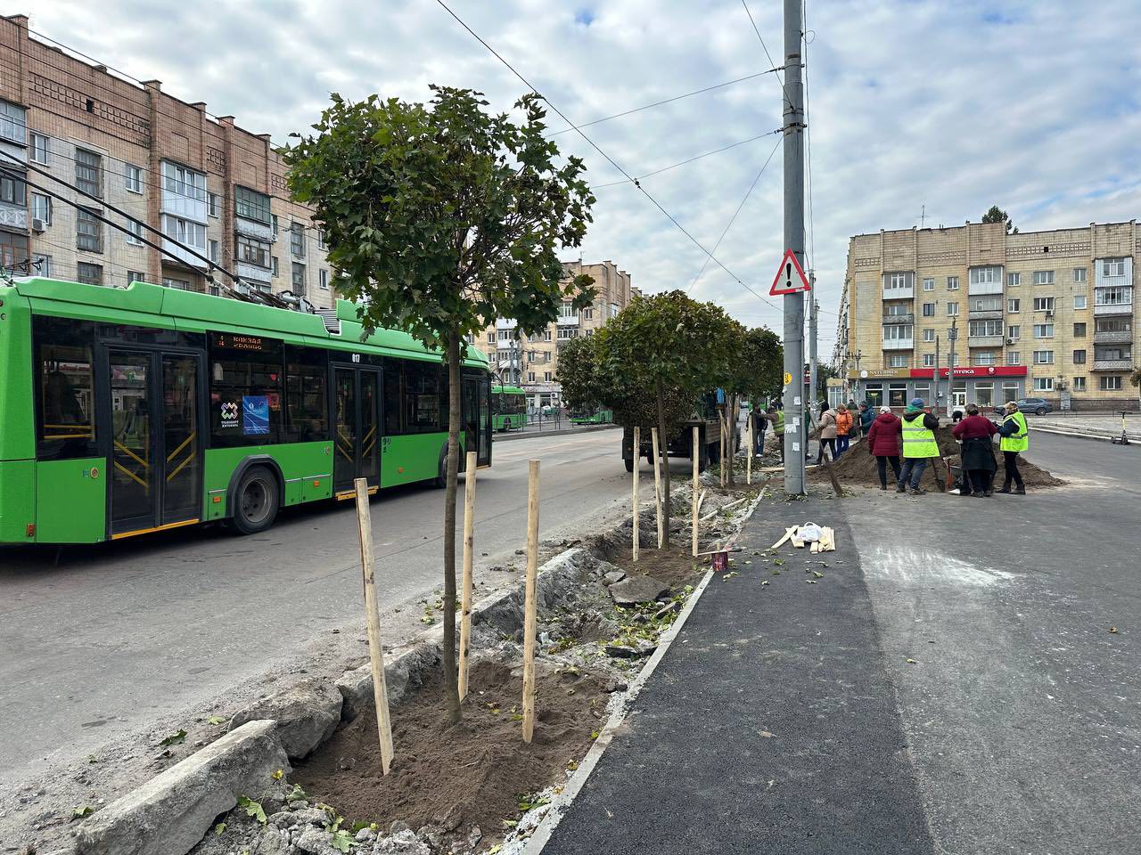 Цієї осені КП «Зеленбуд» продовжує роботи з озеленення різних частин міста — нові дерева та кущі висаджують на вулицях Київській, Чуднівській, Бориса Тена, Покровській та проспекті Незалежності.