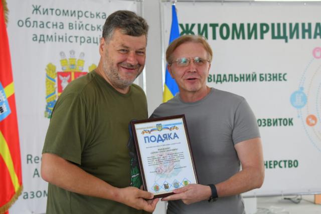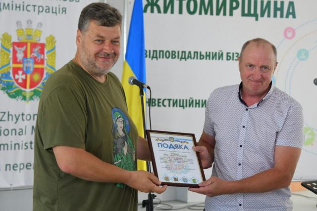 На заході відзначили відповідальних суб’єктів підприємництва з кожного району Житомирщини, релоковані підприємства, які переїхали з небезпечних регіонів до Житомирської області, підприємства, які успішно реалізовують бізнес-проєкти завдяки Урядовій програмі безповоротних грантів для створення та розвитку власного бізнесу єРобота, сумлінних платників податків та підприємства, які успішно здійснюють зовнішньоекономічну діяльність.