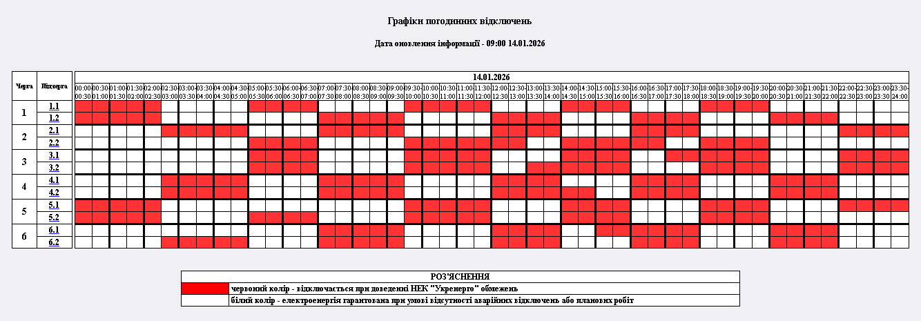 Обмеження споживання електрики 13 січня: графіки