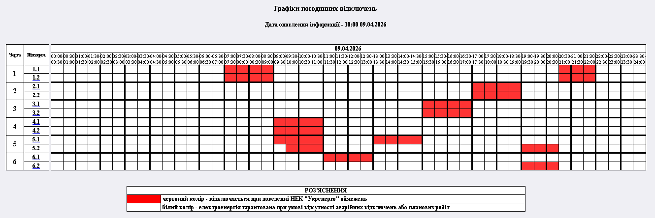 9 квітня 2026 року за вказівкою НЕК "Укренерго" з 9:30 маємо зміни у ГПВ, — повідомляють в Житомиробленерго.