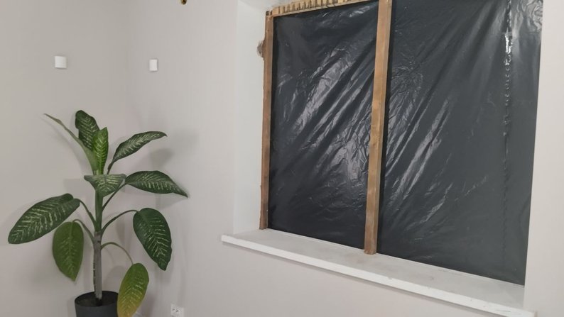 Вікна в будинку закрили плівкою. Житомир, 31 березня 2025 року. Суспільне Житомир/Леонід Харшан