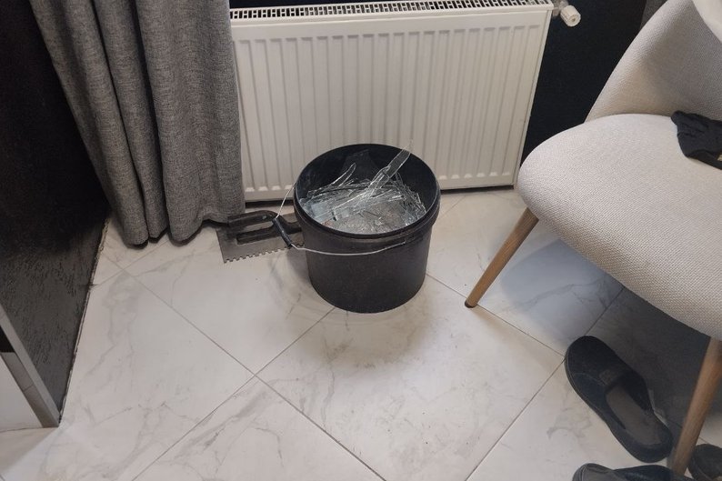 Скло з вікон, вибите в будинку родини Анни ударною хвилею після падіння "шахеда". Житомир, 31 березня 2025 року. Суспільне Житомир/Леонід Харшан
