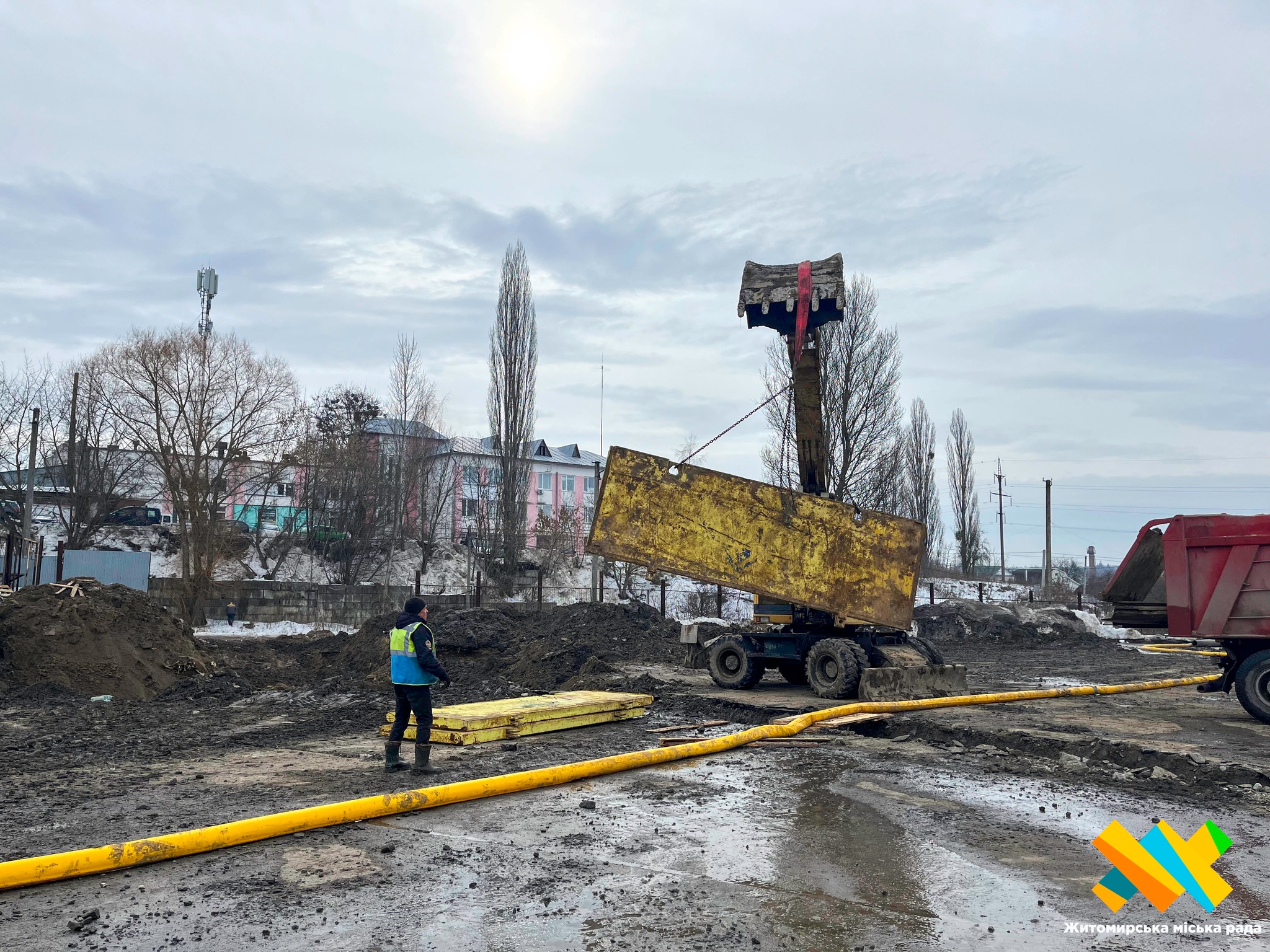 На місці працює бригада КП «Житомирводоканал» разом із підрядниками та технікою.